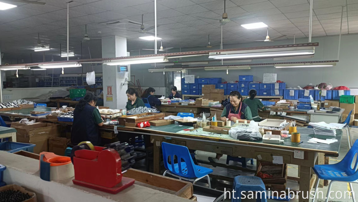 SAMINA FORAM COMPANY se yon manifakti pwofesyonèl nan bwòs makiyaj tankou bwòs ront, bwòs poud, bwòs fondasyon, bwòs sousi, bwòs pompier ak bwòs lòt. Byenveni nan vizite faktori nou yo nan Shenzhen.
